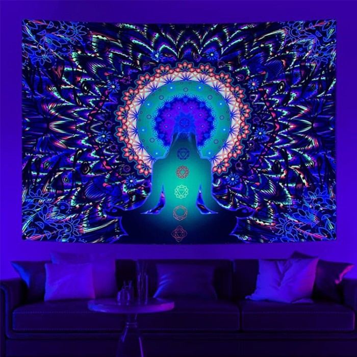 Buddha - UV Reactive Tapestry with Wall Hanging Accessories