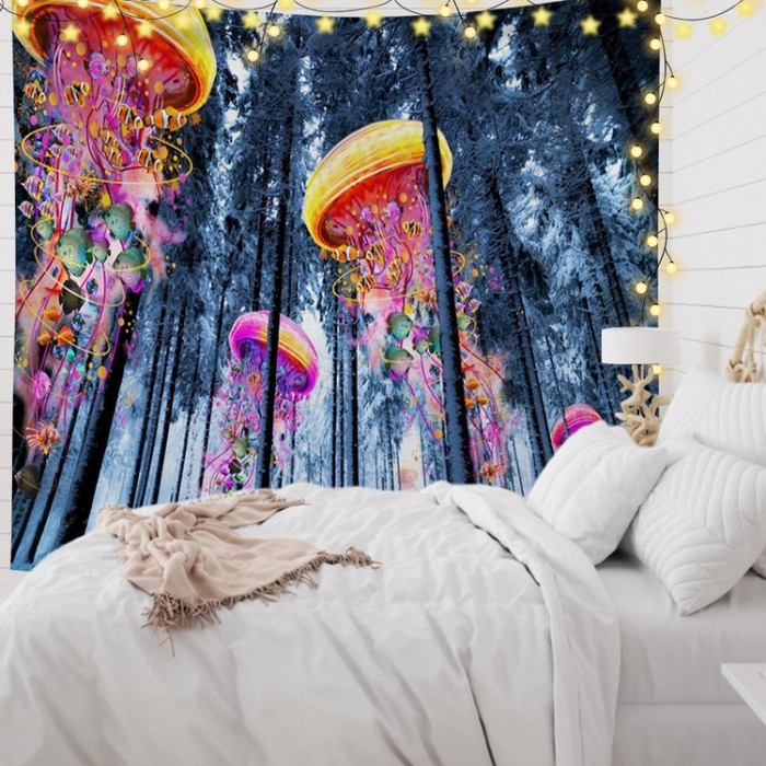 Forest Jellyfish Printed Tapestry Hanging Wall Blanket Carpet Bedroom Dorm Cover Background Cloth Mat Home Decoration