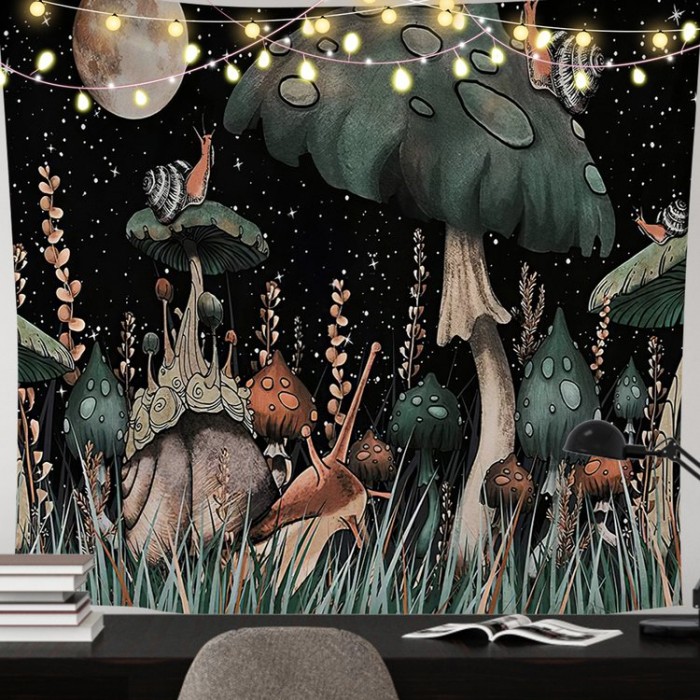 Mushroom Snail Printed Woven Tapestry Polyester Wall Hanging Bohemian Tapestries Camping Travel Rug Carpets Blanket Art Home Room Decoration