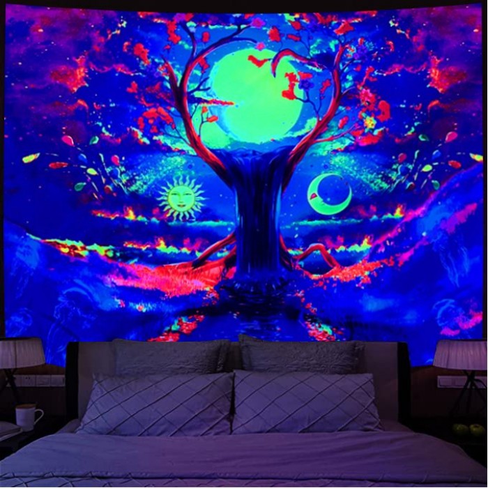 【Unique Design】Our luminous tapestries are printed with advanced HD printing technology, with high-definition patterns, bright colors and no fading. Fluorescent effects can fill your room or dorm with mystery and psychedelia, making a great decorative element for your room.