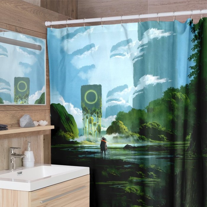 3D Print Shower Curtains Polyester Waterproof Bathroom Cloth Washable Bath Screen with 12 Hooks Home DecorationFeature:1. 3D printing effect, high-def..
