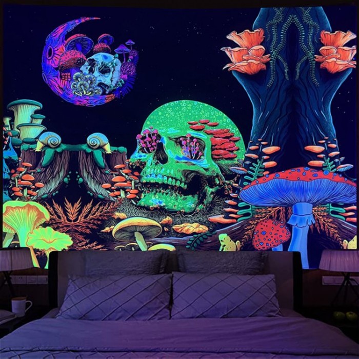 【Unique Design】Our luminous tapestries are printed with advanced HD printing technology, with high-definition patterns, bright colors and no fading. Fluorescent effects can fill your room or dorm with mystery and psychedelia, making a great decorative element for your room.