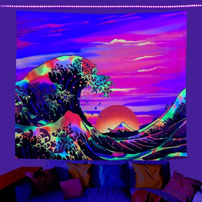 【Unique Design】Our luminous tapestries are printed with advanced HD printing technology, with high-definition patterns, bright colors and no fading. Fluorescent effects can fill your room or dorm with mystery and psychedelia, making a great decorative element for your room.