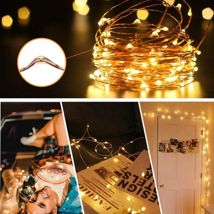 2M 20LED Christmas String Lights Copper Wire Battery Box Warm White Light for Holiday Christmas New Year Party Room Curtain Garden Window Bar Tree Decoration