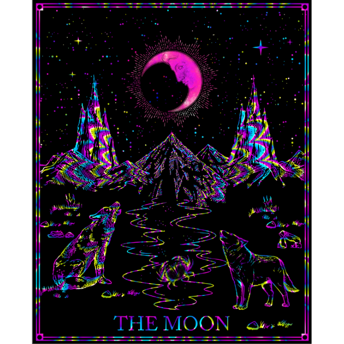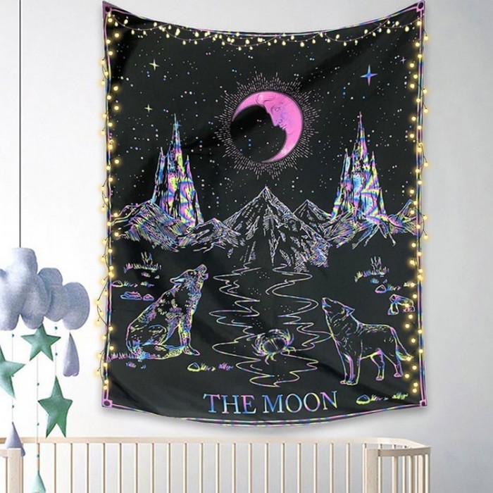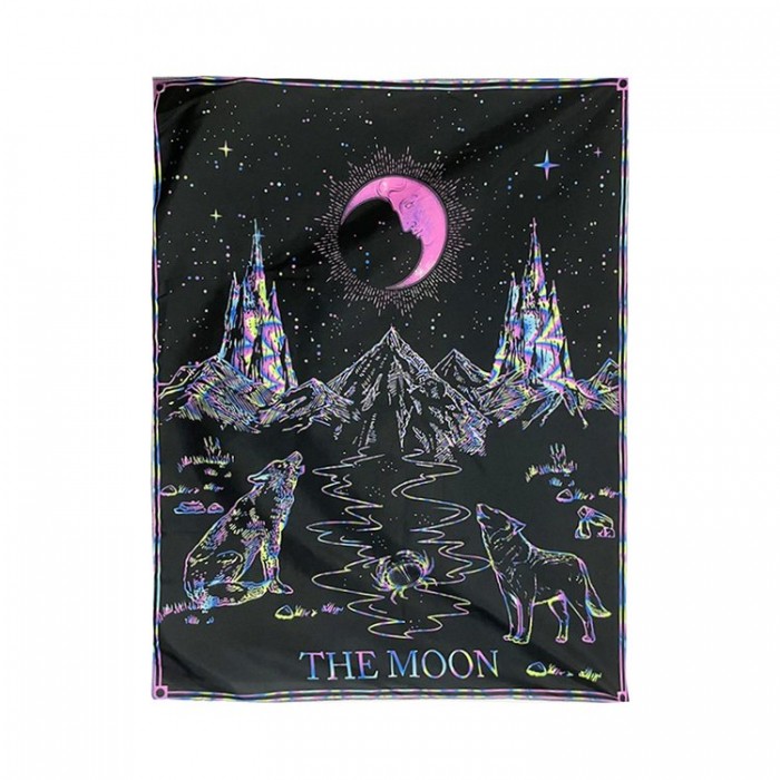 Tarot moon - UV Reactive Tapestry with Wall Hanging Accessories