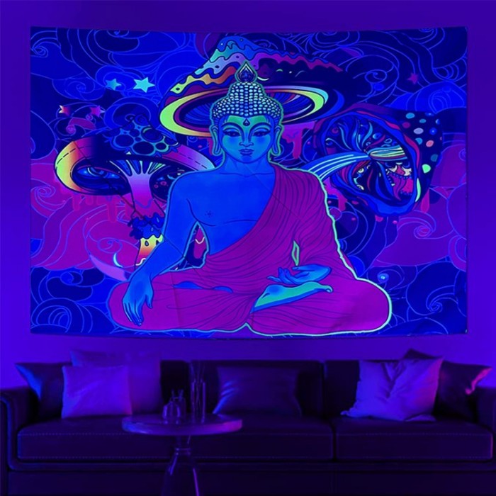 Buddha - UV Reactive Tapestry with Wall Hanging Accessories