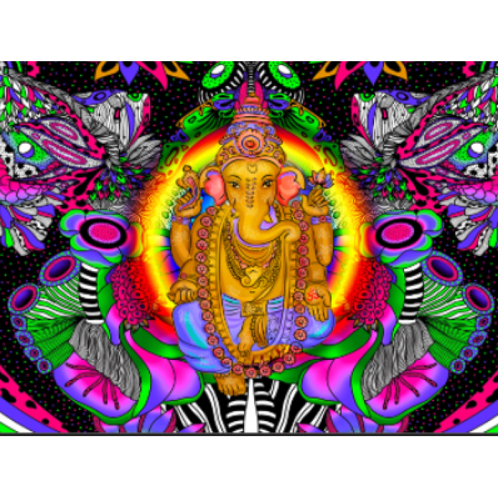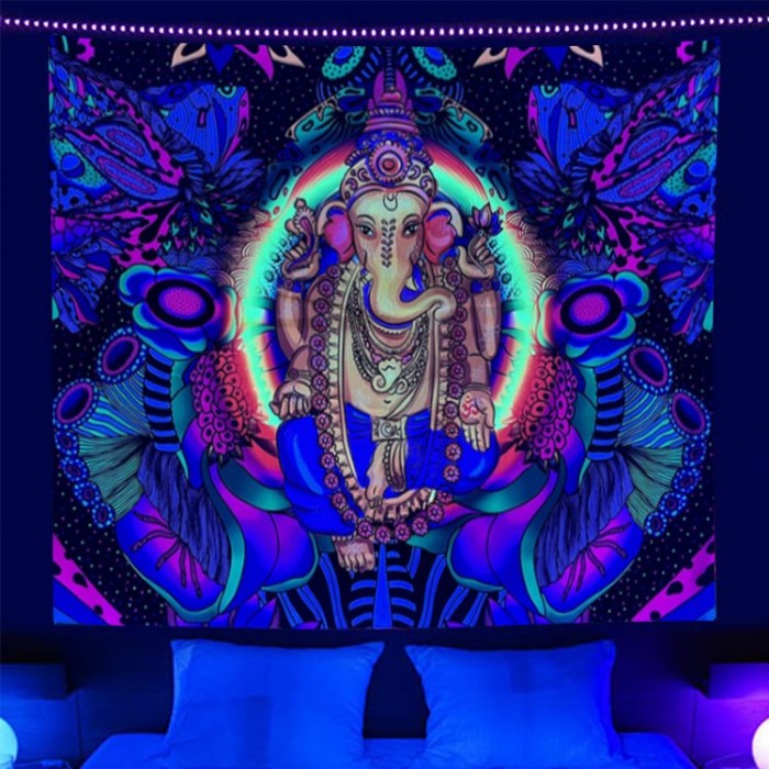 Elephant Buddha - UV Reactive Tapestry with Wall Hanging Accessories