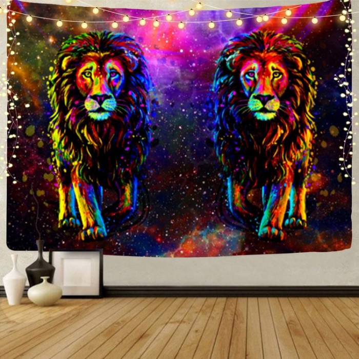 Lion - UV Reactive Tapestry with Wall Hanging Accessories