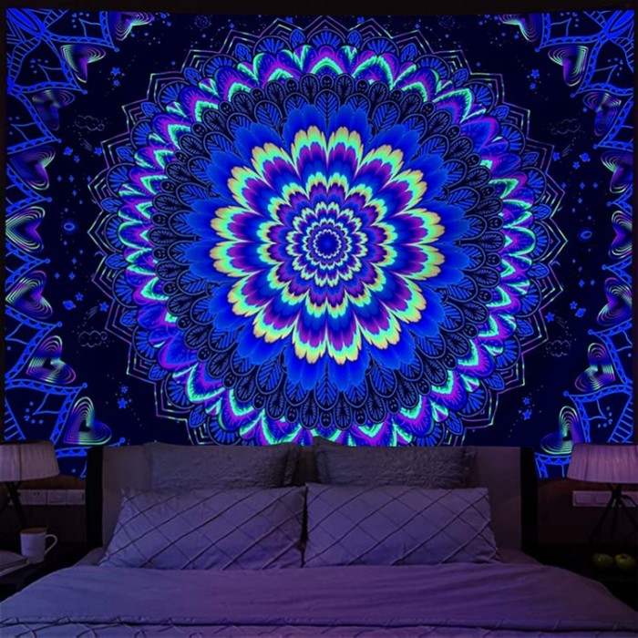 【Unique Design】Our luminous tapestries are printed with advanced HD printing technology, with high-definition patterns, bright colors and no fading. Fluorescent effects can fill your room or dorm with mystery and psychedelia, making a great decorative element for your room.