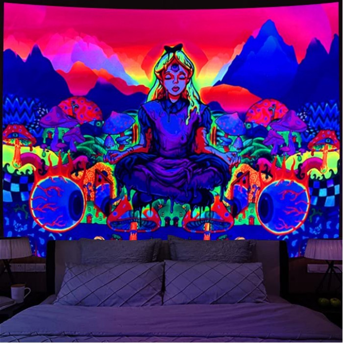 【Unique Design】Our luminous tapestries are printed with advanced HD printing technology, with high-definition patterns, bright colors and no fading. Fluorescent effects can fill your room or dorm with mystery and psychedelia, making a great decorative element for your room.