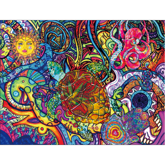 Psychedelic turtle - UV Reactive Tapestry with Wall Hanging Accessories