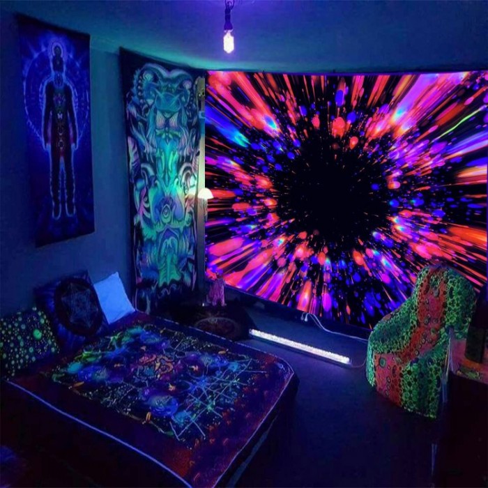 【Unique Design】Our luminous tapestries are printed with advanced HD printing technology, with high-definition patterns, bright colors and no fading. Fluorescent effects can fill your room or dorm with mystery and psychedelia, making a great decorative element for your room.