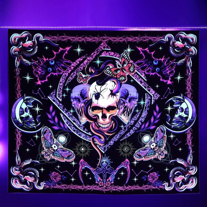 Skull - UV Reactive Tapestry with Wall Hanging Accessories