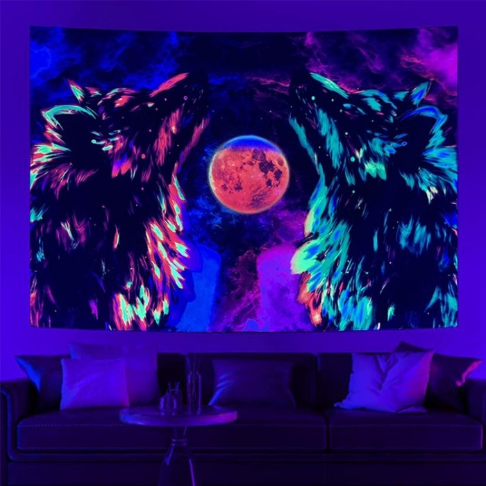 Wolf - UV Reactive Tapestry with Wall Hanging Accessories