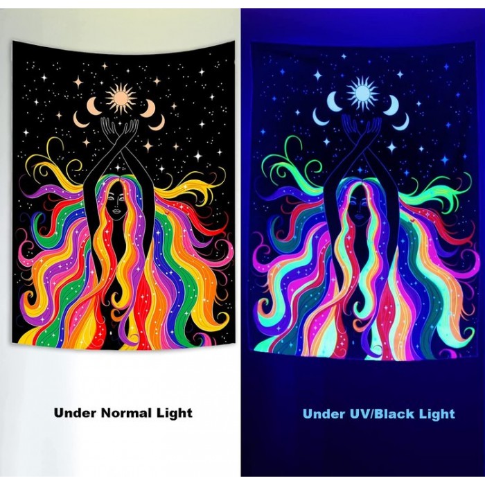 【Unique Design】Our luminous tapestries are printed with advanced HD printing technology, with high-definition patterns, bright colors and no fading. Fluorescent effects can fill your room or dorm with mystery and psychedelia, making a great decorative element for your room.